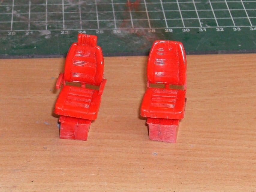 Op de bijrijders stoel heb ik ook een hoofdsteun en armsteunen gemaakt. Dit vond ik mooier staan in de cabine.
