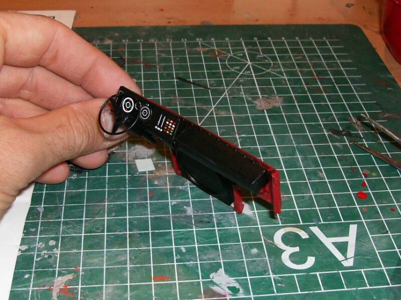 Ook bij dit model heb ik eerst alles zilver geverfd en daarna alles in de juiste kleuren gespoten.