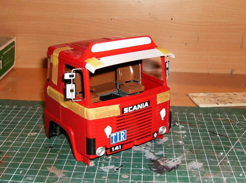 Now that the trailer, chassis, and cargobox for the truck are finished, it's time for the cab. The best thing you can do with this cab is to partially assemble it. This offers advantages in terms of painting and prevents problems with gluing it together. I added a promotional bar to the roof.