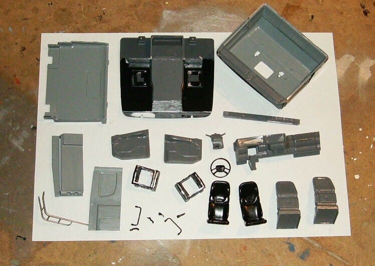 Voor de open opstappen van de voorspatborden heb ik de Resin Aftermarket set gebruikt. De 6 cilinder Motor komt van JCL en heb ik aangevuld met Italeri onderdelen.