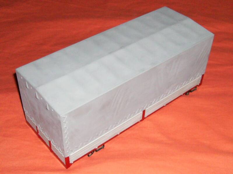 I then shortened it from 4 to 3 bulkheads, giving the trailer a length of 9 meters, which in 1/24 scale is 38 cm long.