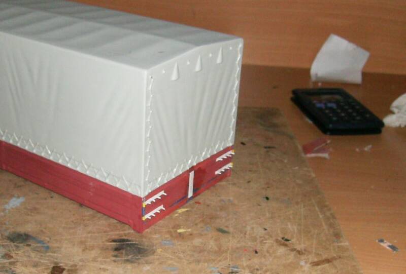Hiervoor heb ik gebruikte Scania spatborden gebruikt die ik voorzien heb van nieuwe steunen gemaakt van Evergreen stippen