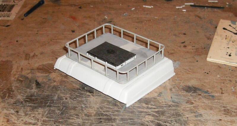 I built this roof rack from 2 Italeri roof racks from the Accessory box and for the grille I sacrificed a radiator from a Scania torpedo.