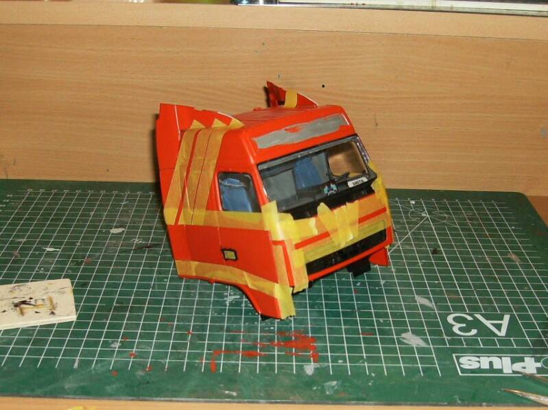 Ook met dit model ben ik begonnen met de Motor en het Chassis en daarna de cabine in elkaar gezet om vervolgens de strepen en reclame er op te maken.